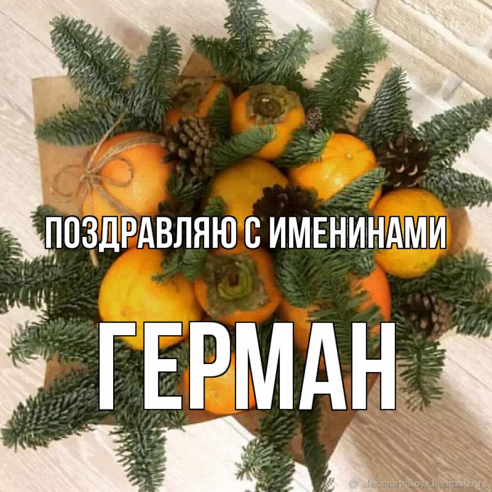 Открытка Поздравляю с именинами Герман. хвоя и витамины. апельсины и хурьма
