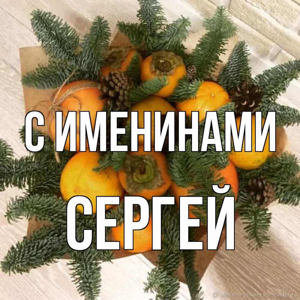 Открытка С именинами Сергей. хвоя и витамины. апельсины и хурьма
