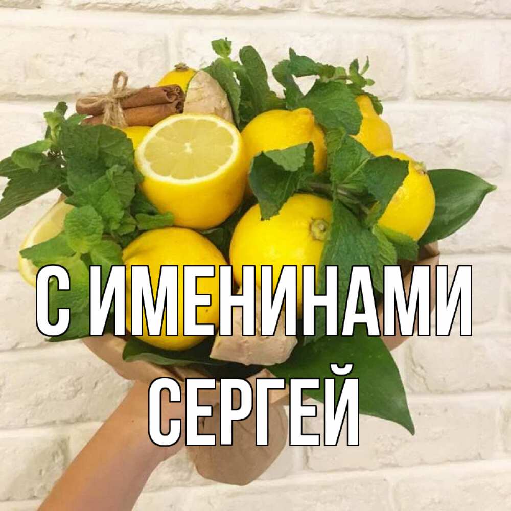 Открытка С именинами Сергей. лимоны и мята. витамины