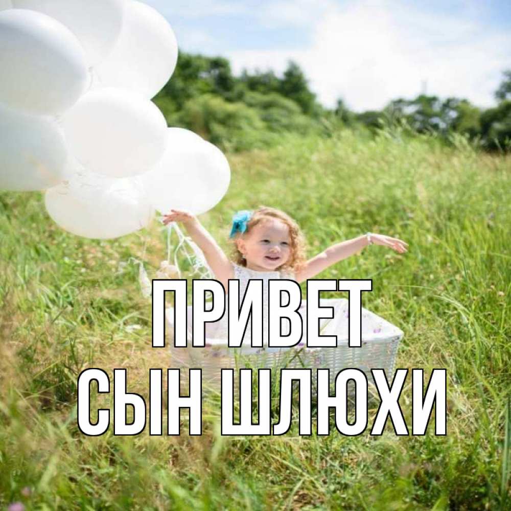 Открытка Привет Сын шлюхи. вообще не понял. девочка сидит в корзине наверное от этого больной должен выздороветь