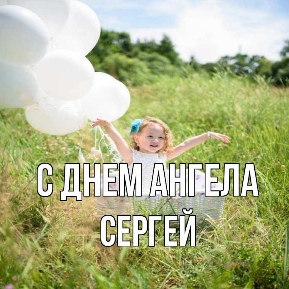 Открытка С днем Ангела Сергей. вообще не понял. девочка сидит в корзине наверное от этого больной должен выздороветь