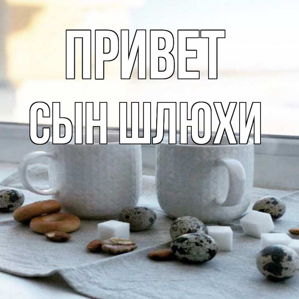 Открытка Привет Сын шлюхи. в компании проще болеть. две кружки