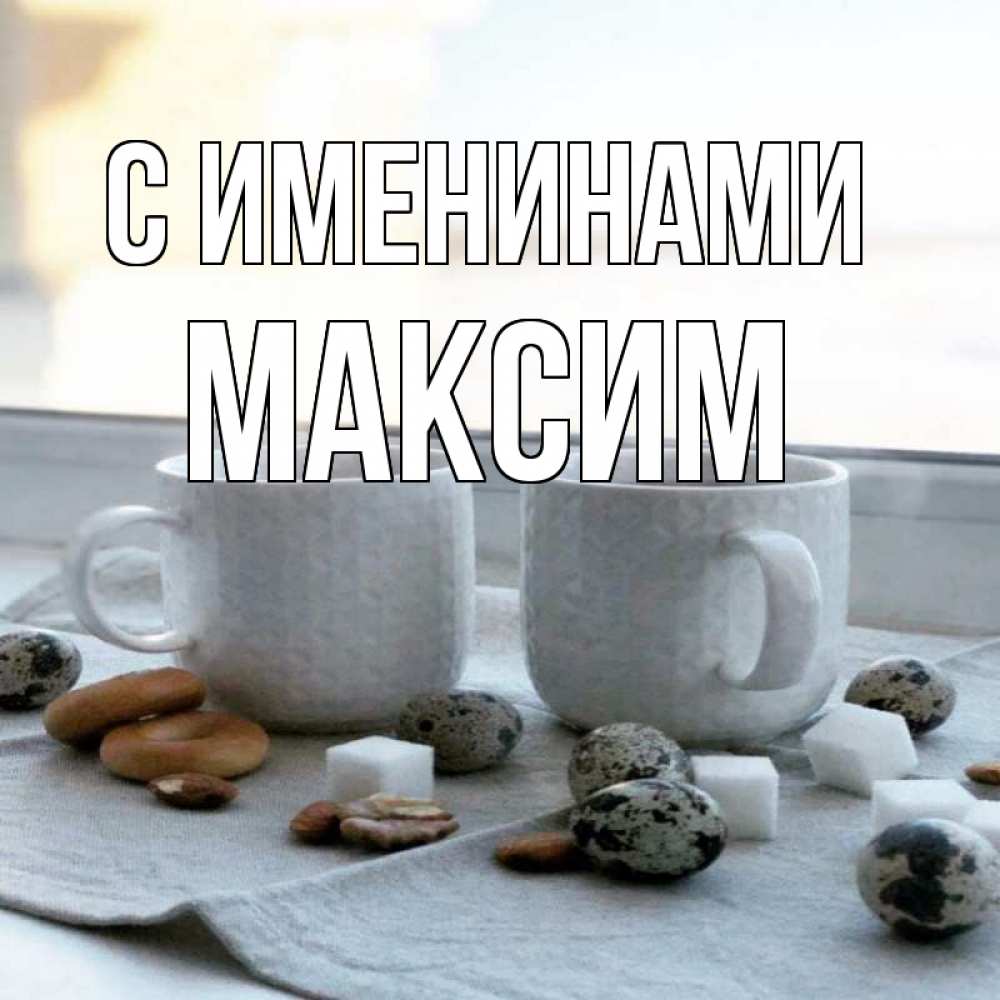 Открытка С именинами Максим. в компании проще болеть. две кружки