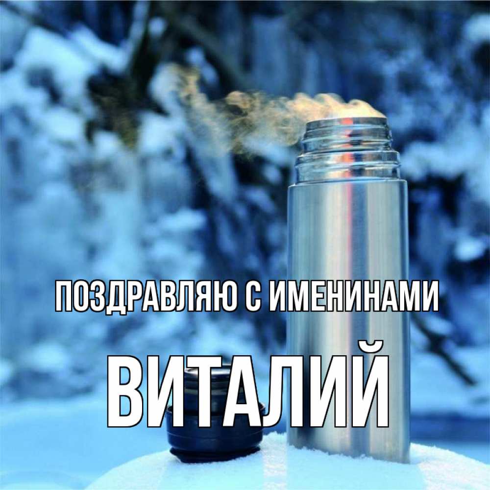 Открытка Поздравляю с именинами Виталий. термос с зельем от простуды. лечитесь не болейте