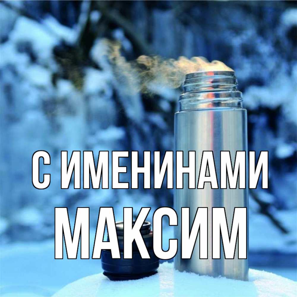 Открытка С именинами Максим. термос с зельем от простуды. лечитесь не болейте