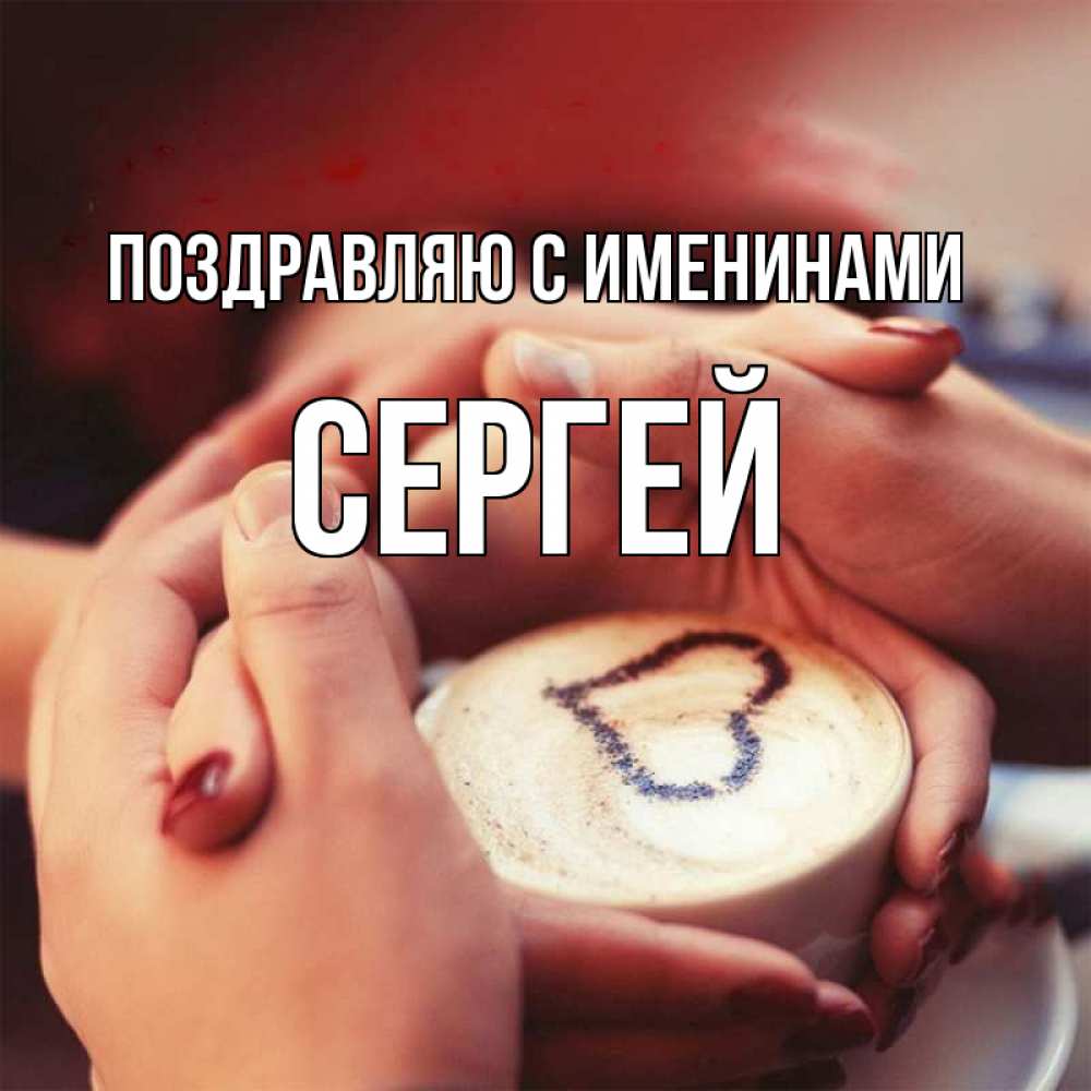 Открытка Поздравляю с именинами Сергей. Доброе утро кофе с сердечком. мы навсегда вместе