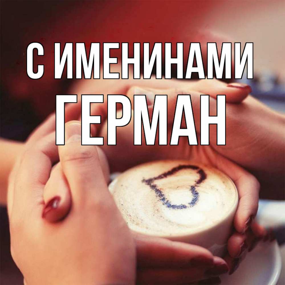 Открытка С именинами Герман. Доброе утро кофе с сердечком. мы навсегда вместе