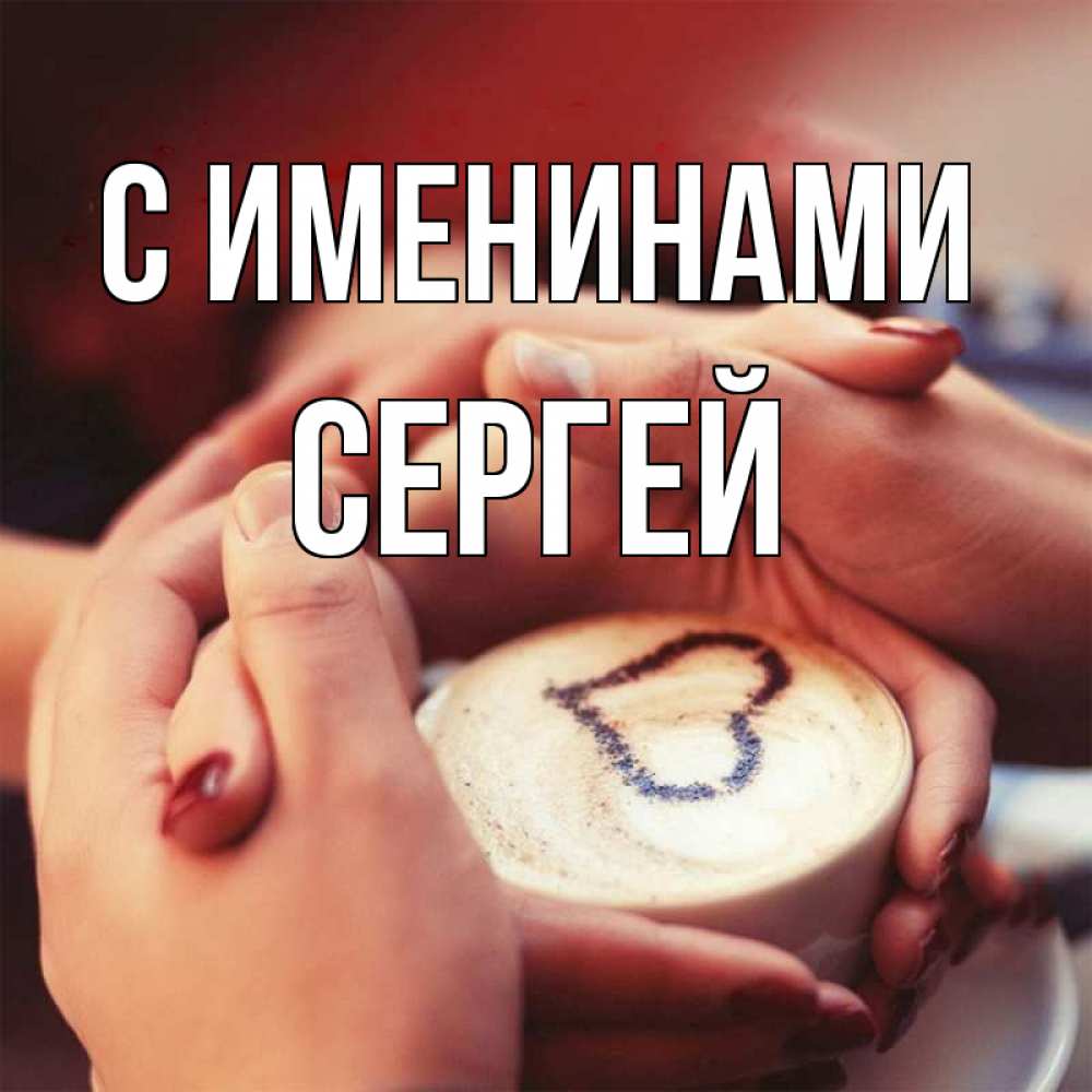 Открытка С именинами Сергей. Доброе утро кофе с сердечком. мы навсегда вместе