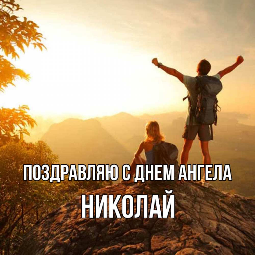 Открытка Поздравляю с днем Ангела Николай. шикарное утро на природе. утро в горах
