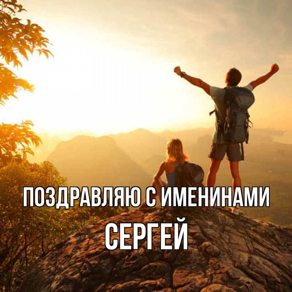 Открытка Поздравляю с именинами Сергей. шикарное утро на природе. утро в горах