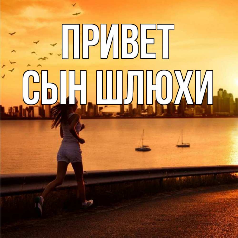Открытка Привет Сын шлюхи. для спортсменов. девушка бежит