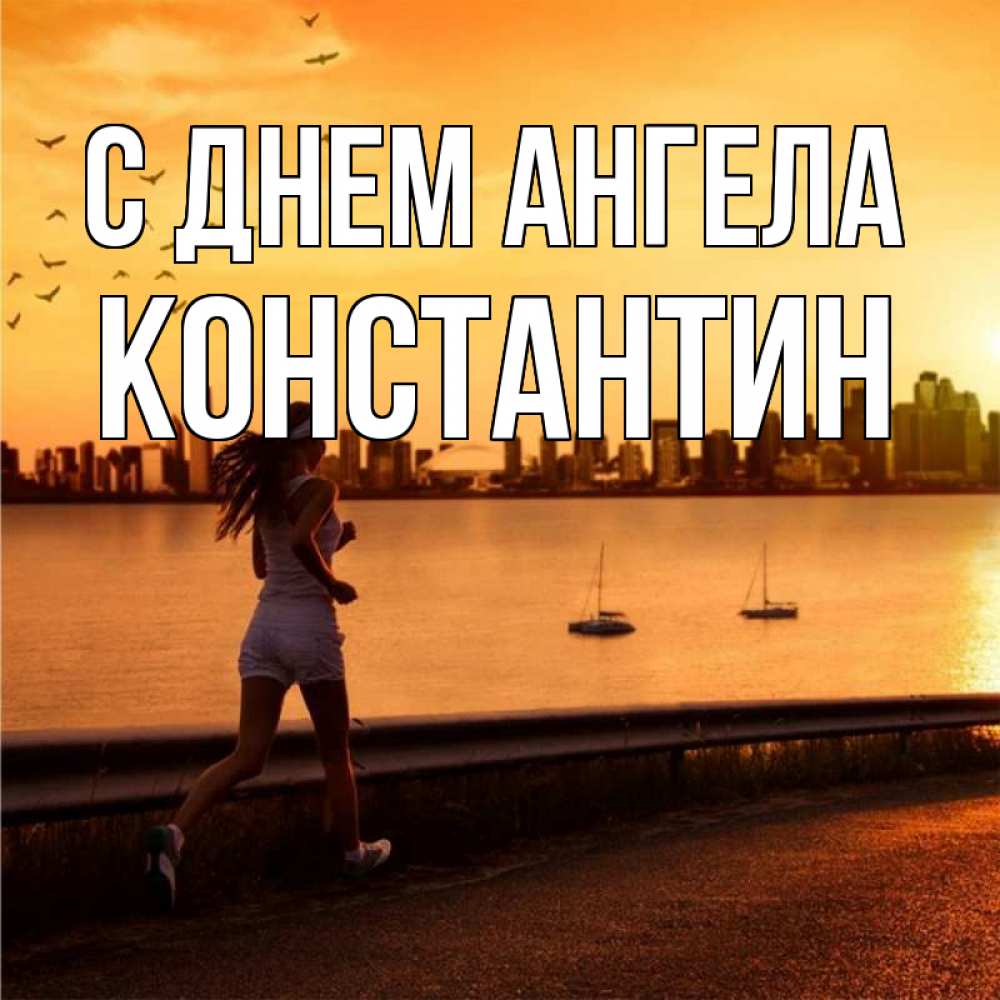 Открытка С днем Ангела Константин. для спортсменов. девушка бежит