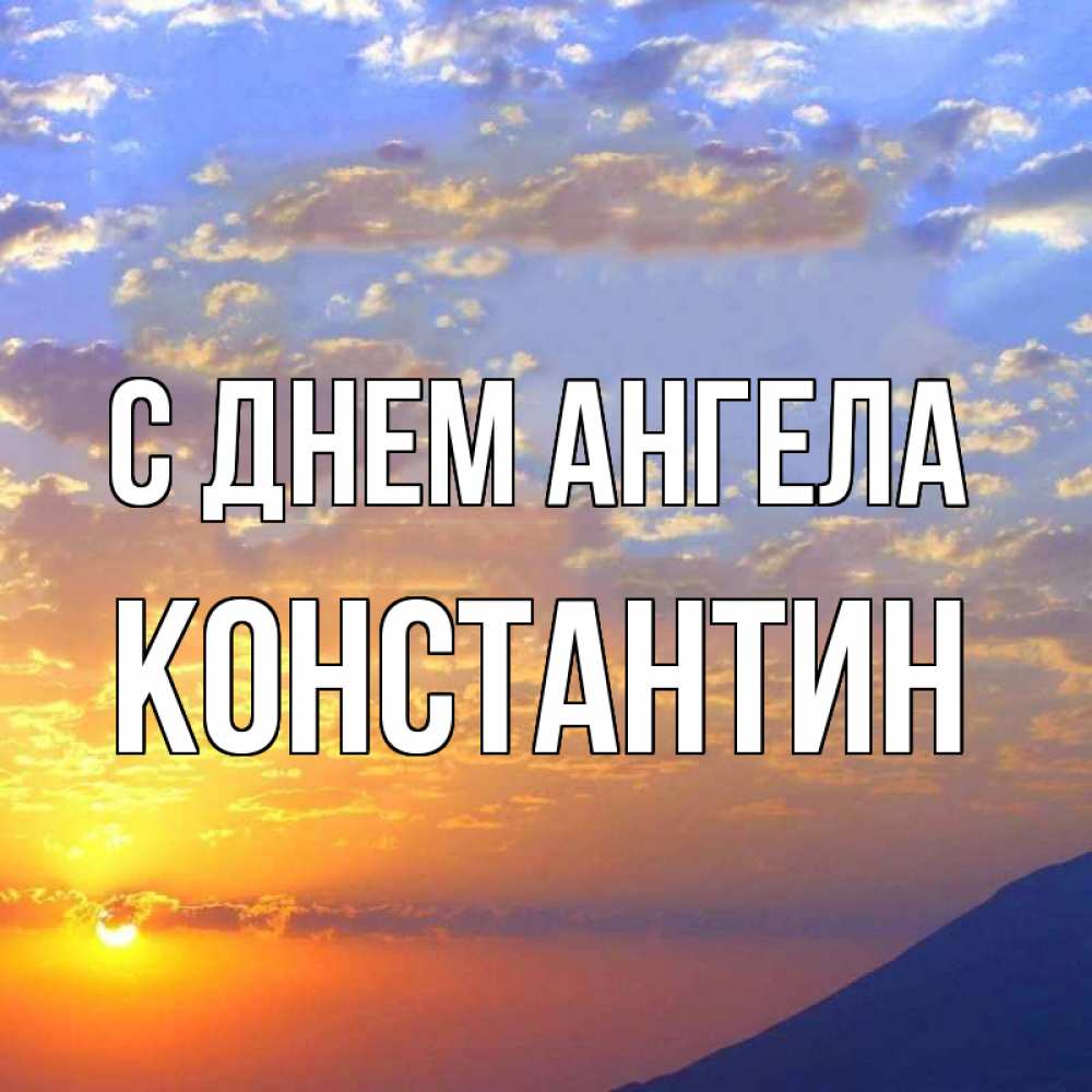 Открытка С днем Ангела Константин. утреннее небо. облака и солнце