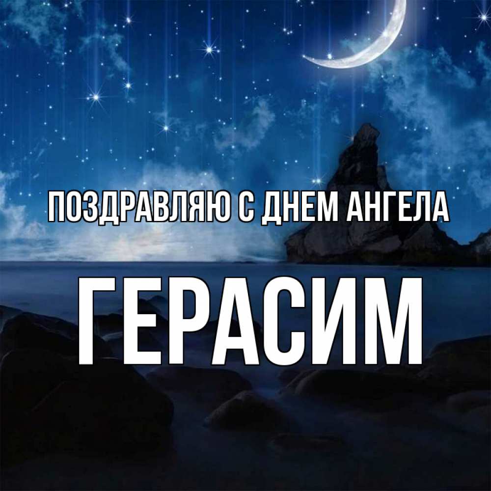 Открытка Поздравляю с днем Ангела Герасим. Скалы и месяц. море