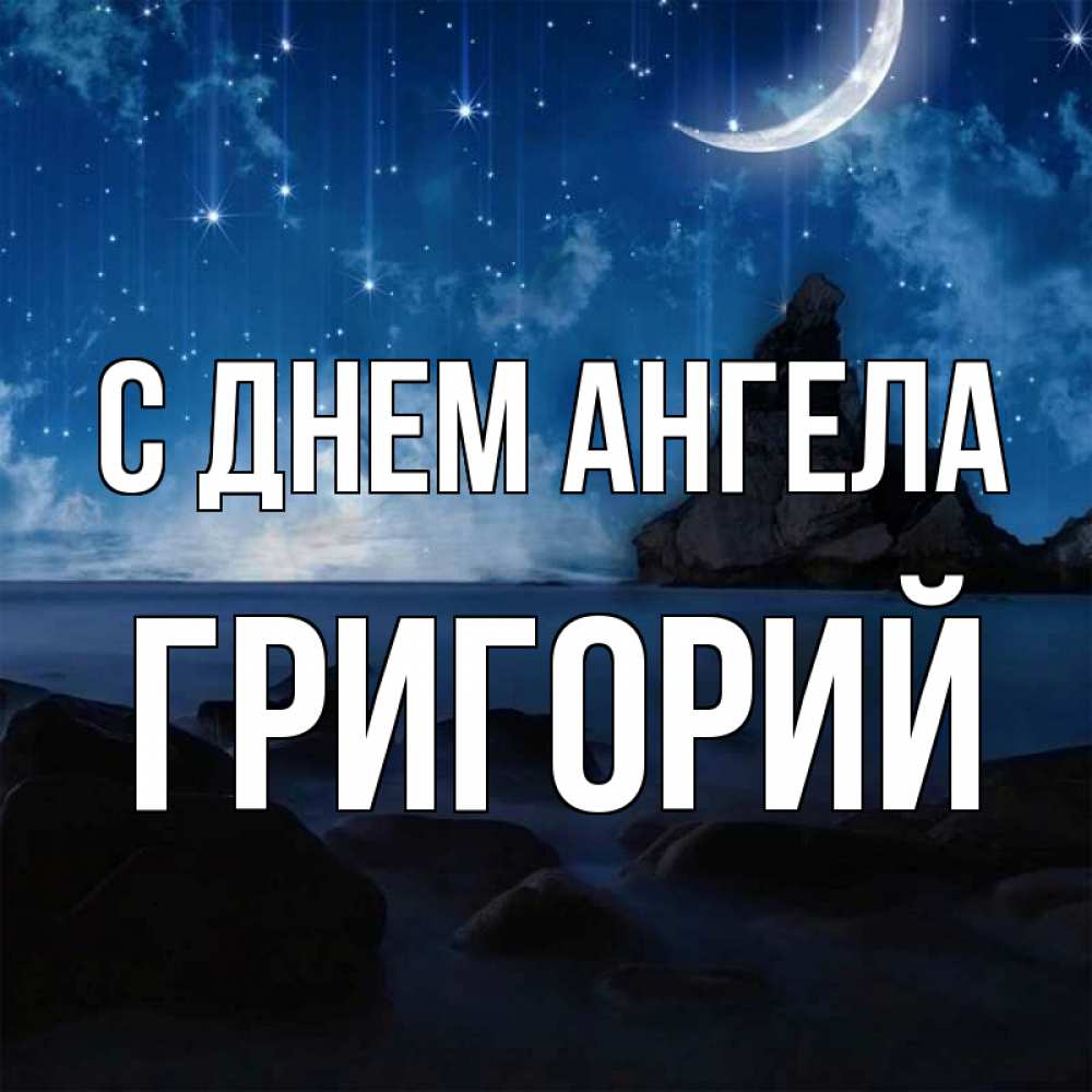 Открытка С днем Ангела Григорий. Скалы и месяц. море