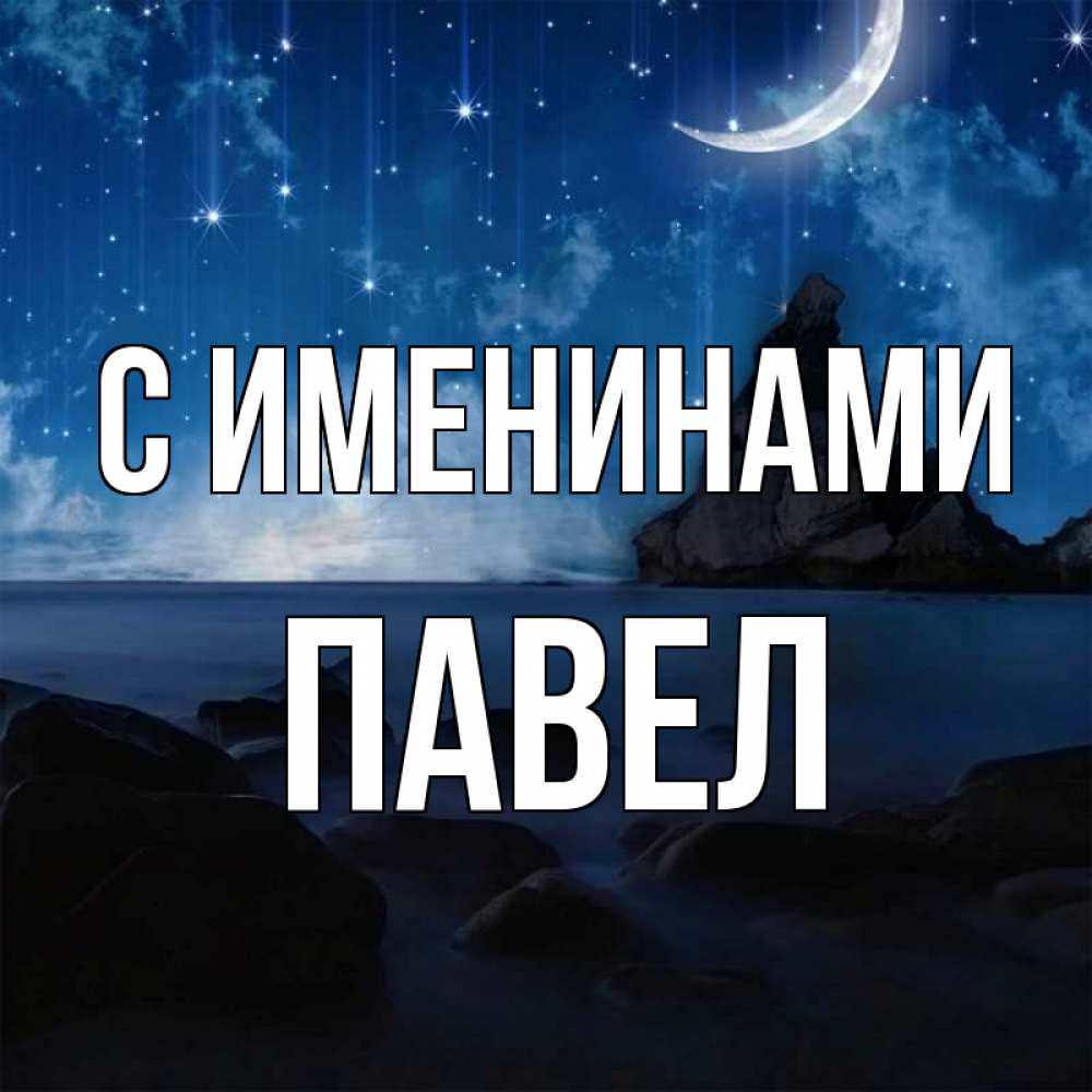 Открытка С именинами Павел. Скалы и месяц. море