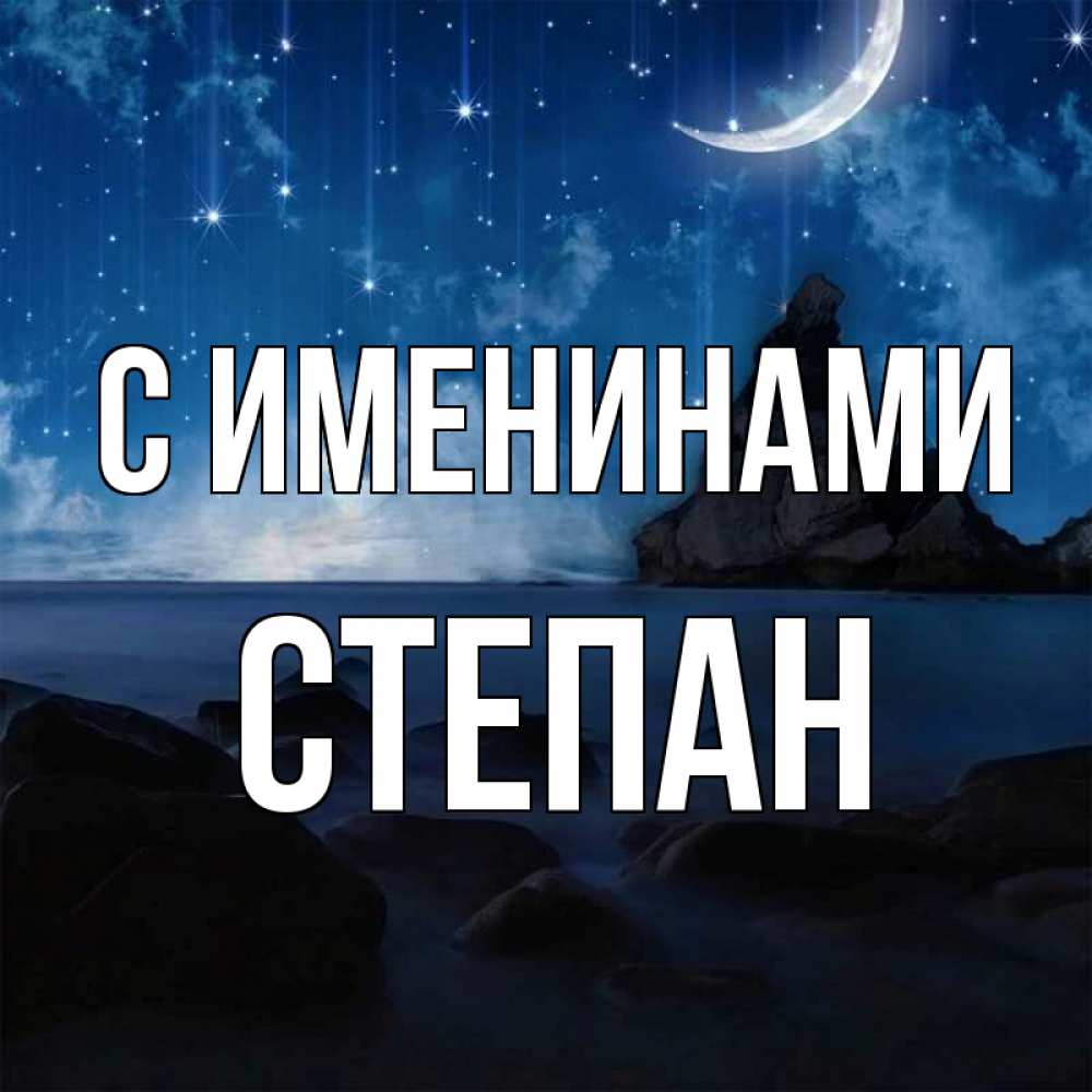 Открытка С именинами Степан. Скалы и месяц. море