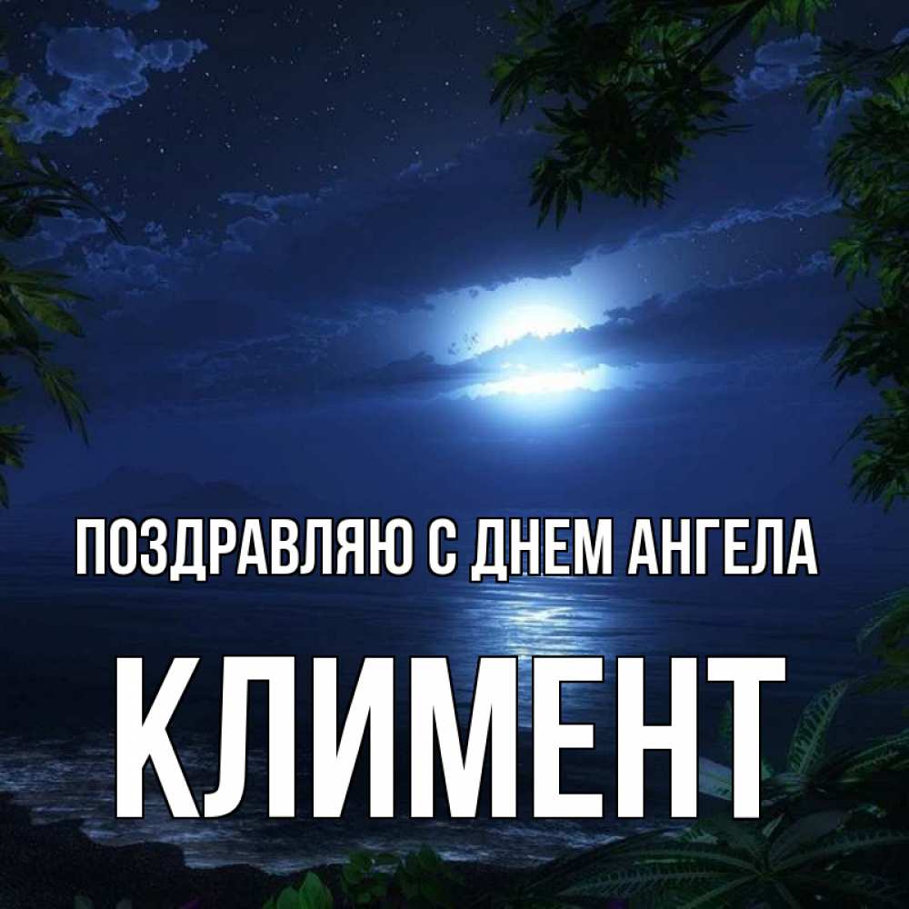 Открытка Поздравляю с днем Ангела Климент. луна сквозь облака. тропический остров