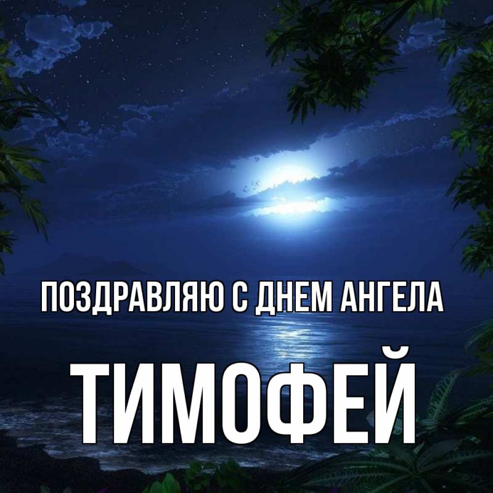 Открытка Поздравляю с днем Ангела Тимофей. луна сквозь облака. тропический остров