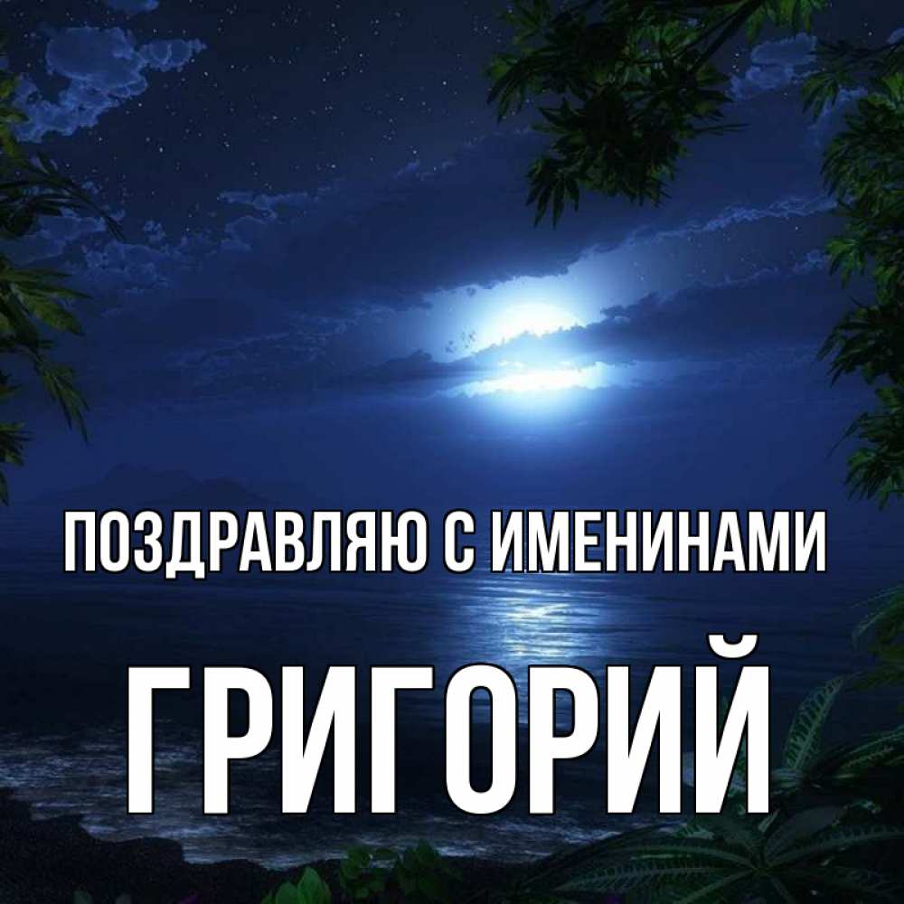 Открытка Поздравляю с именинами Григорий. луна сквозь облака. тропический остров