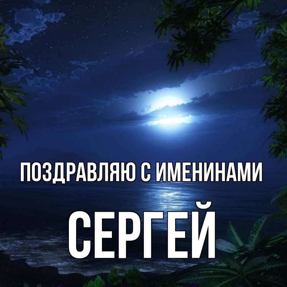 Открытка Поздравляю с именинами Сергей. луна сквозь облака. тропический остров