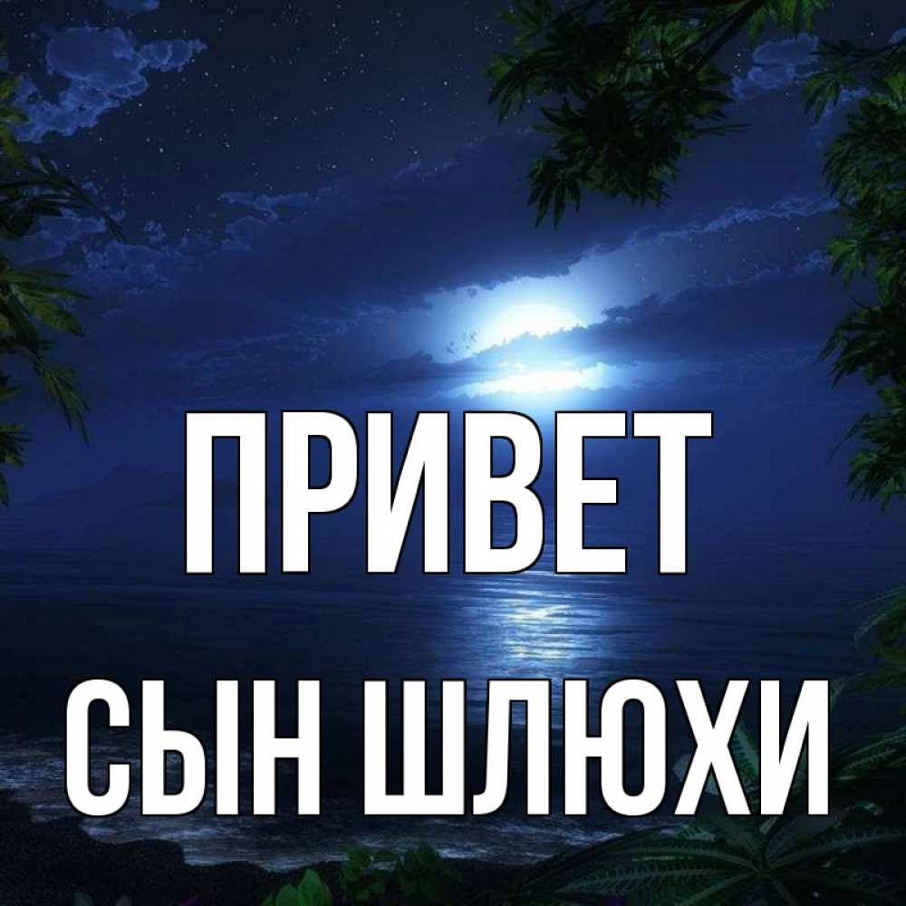 Открытка Привет Сын шлюхи. луна сквозь облака. тропический остров