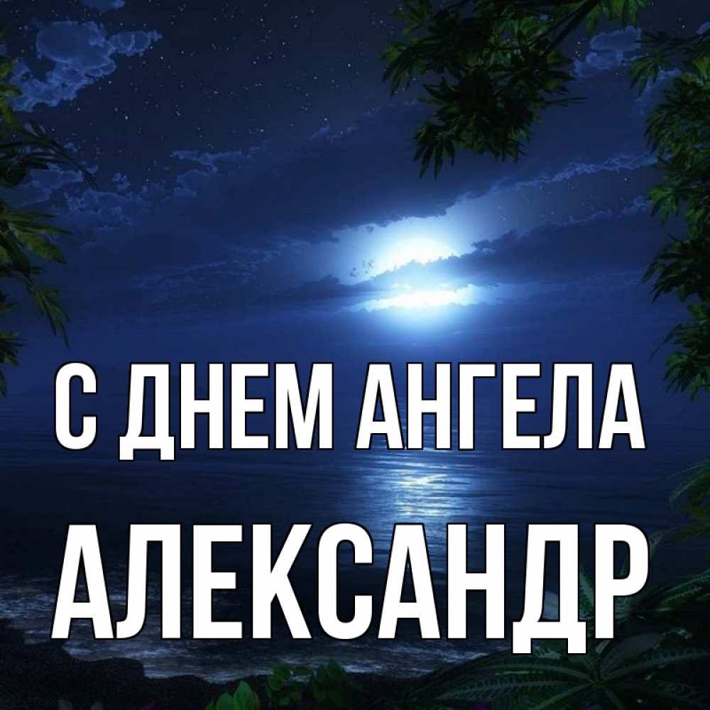 Открытка С днем Ангела Александр. луна сквозь облака. тропический остров