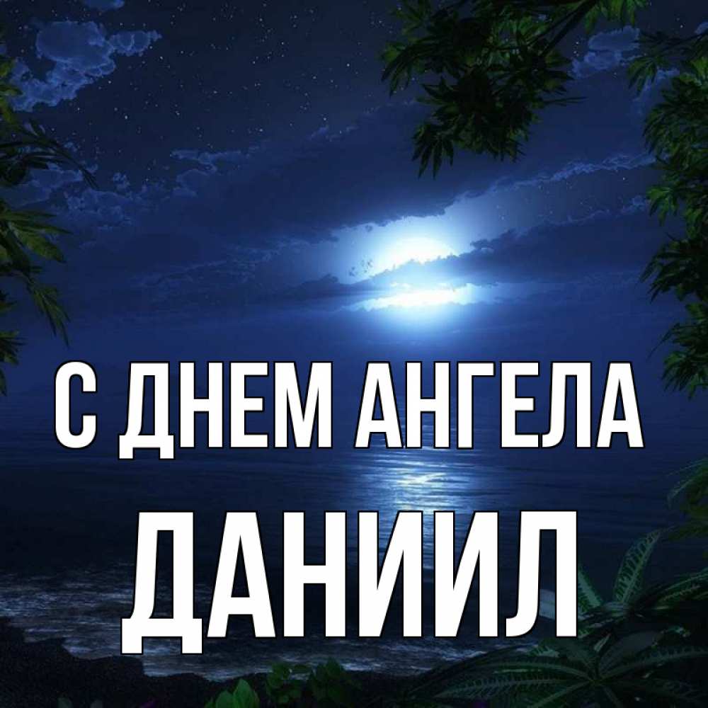 Открытка С днем Ангела Даниил. луна сквозь облака. тропический остров