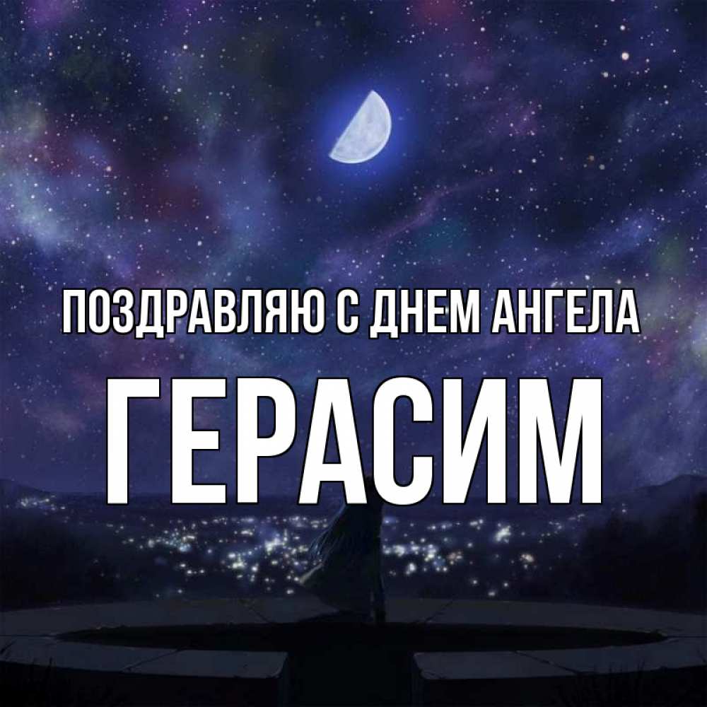 Открытка Поздравляю с днем Ангела Герасим. Звездное небо отражается в море. набережная