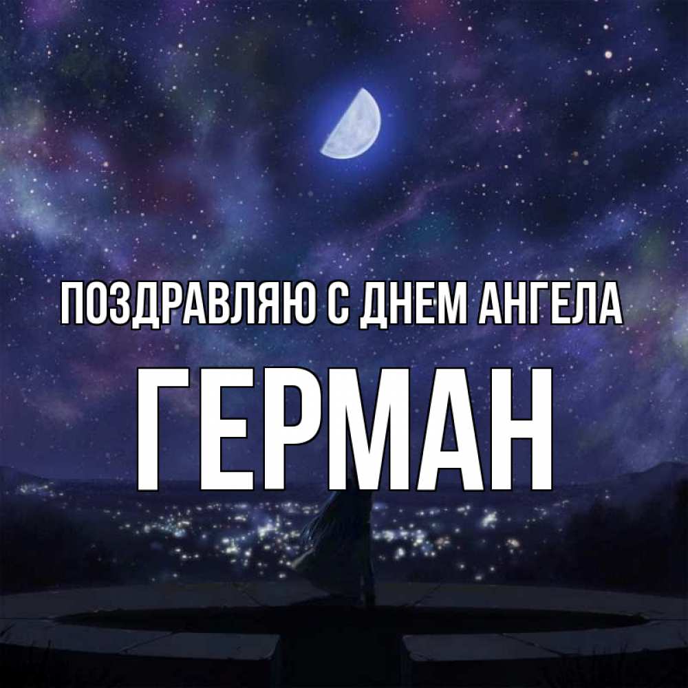 Открытка Поздравляю с днем Ангела Герман. Звездное небо отражается в море. набережная