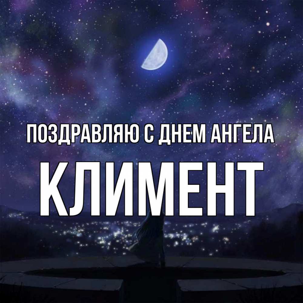 Открытка Поздравляю с днем Ангела Климент. Звездное небо отражается в море. набережная
