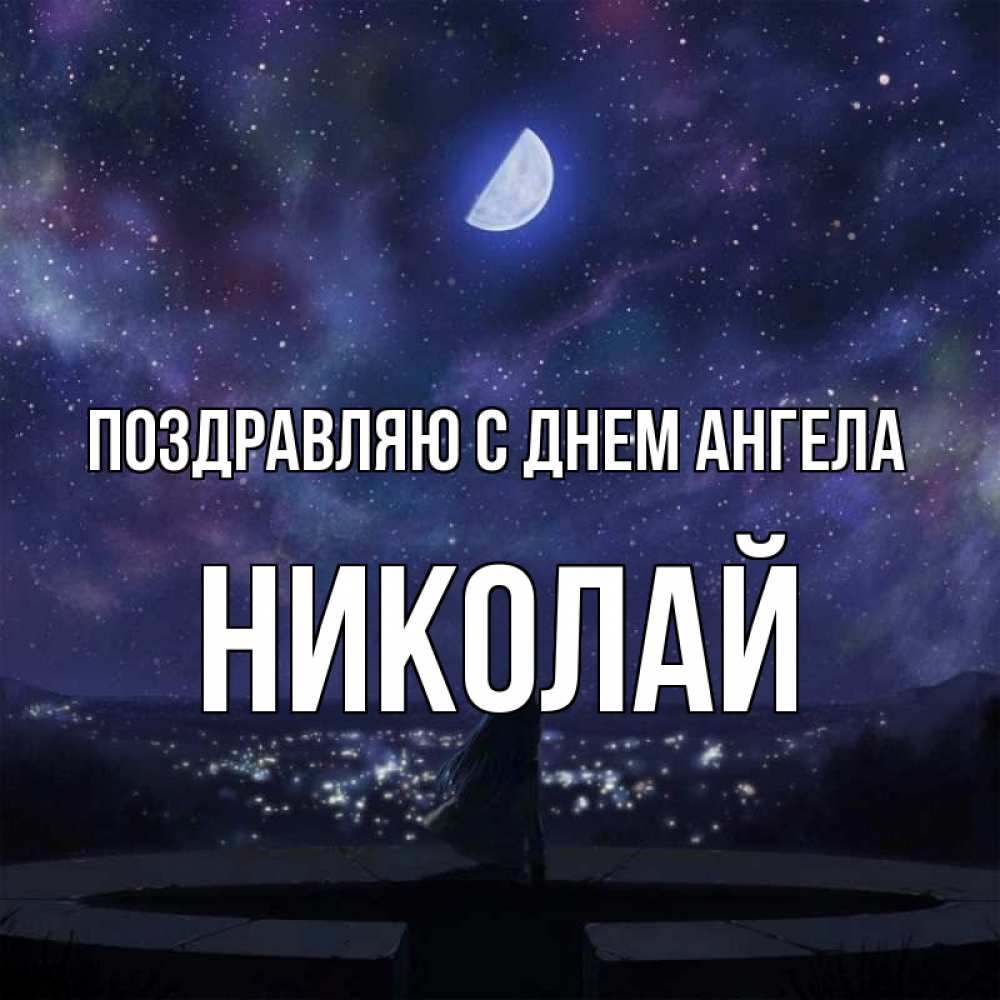Открытка Поздравляю с днем Ангела Николай. Звездное небо отражается в море. набережная