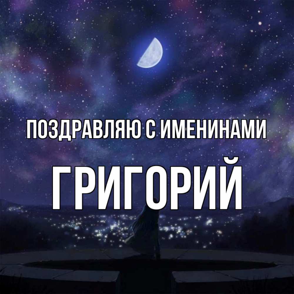 Открытка Поздравляю с именинами Григорий. Звездное небо отражается в море. набережная