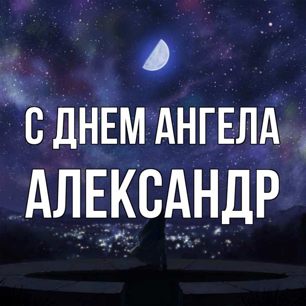 Открытка С днем Ангела Александр. Звездное небо отражается в море. набережная