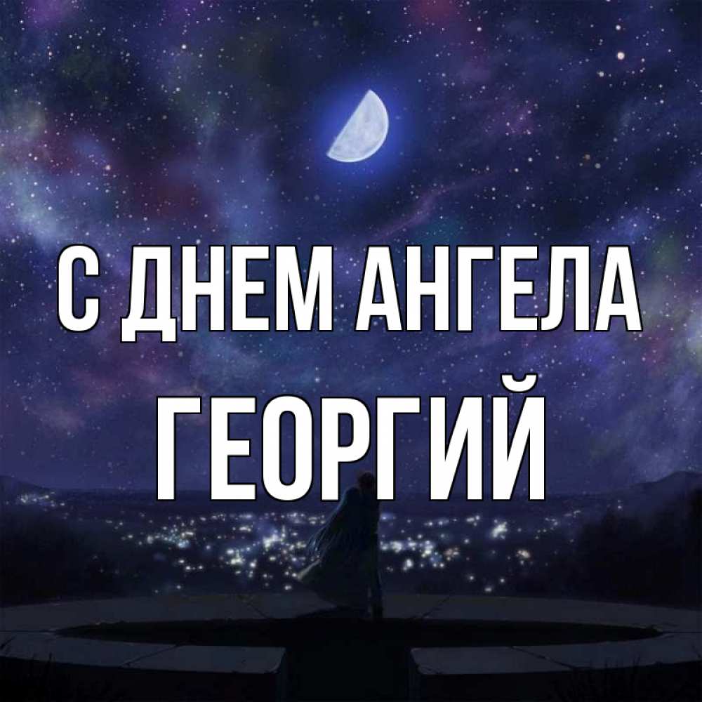 Открытка С днем Ангела Георгий. Звездное небо отражается в море. набережная