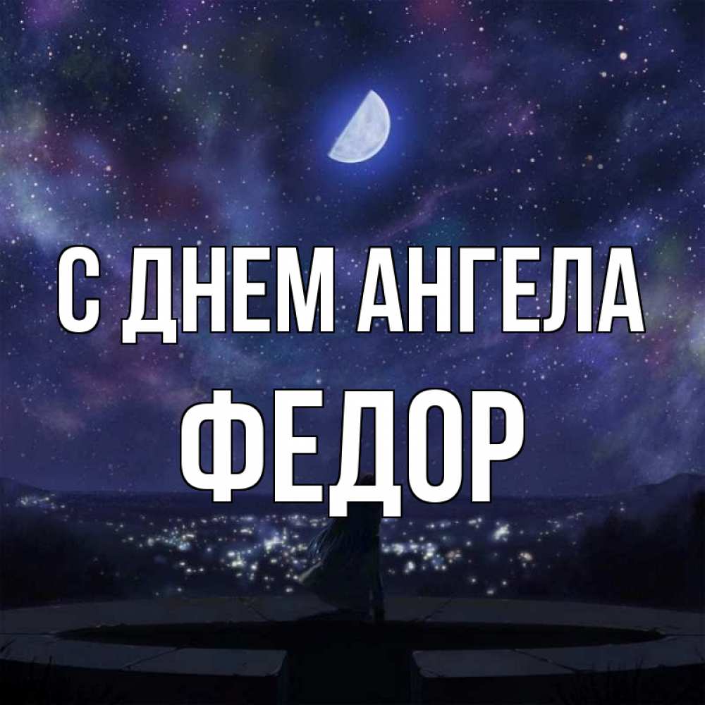 Открытка С днем Ангела Федор. Звездное небо отражается в море. набережная