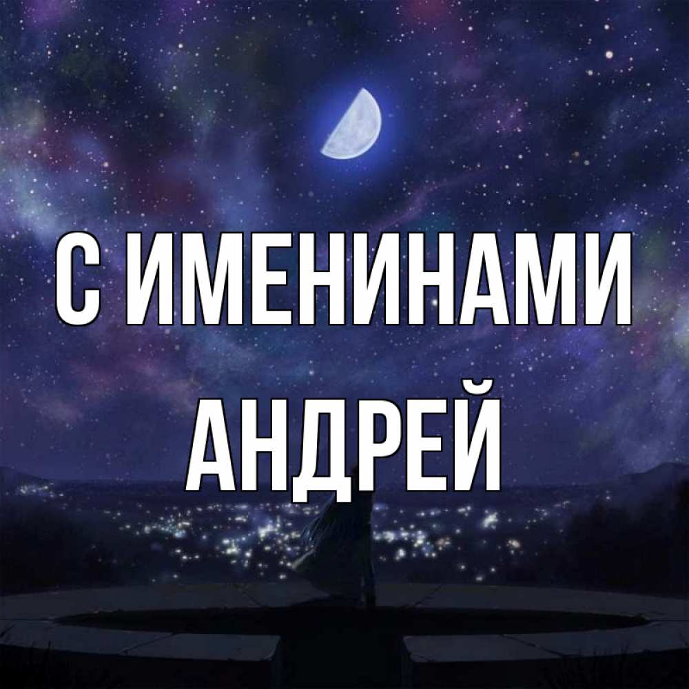 Открытка С именинами Андрей. Звездное небо отражается в море. набережная