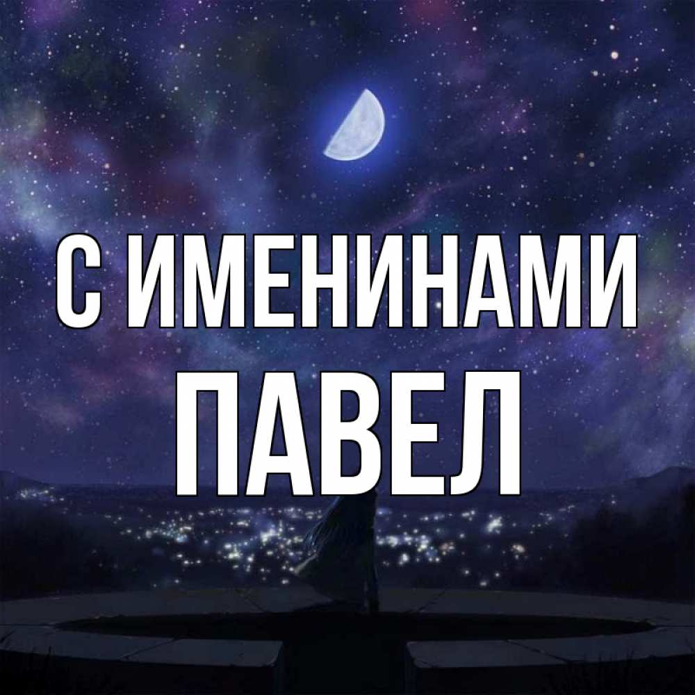 Открытка С именинами Павел. Звездное небо отражается в море. набережная