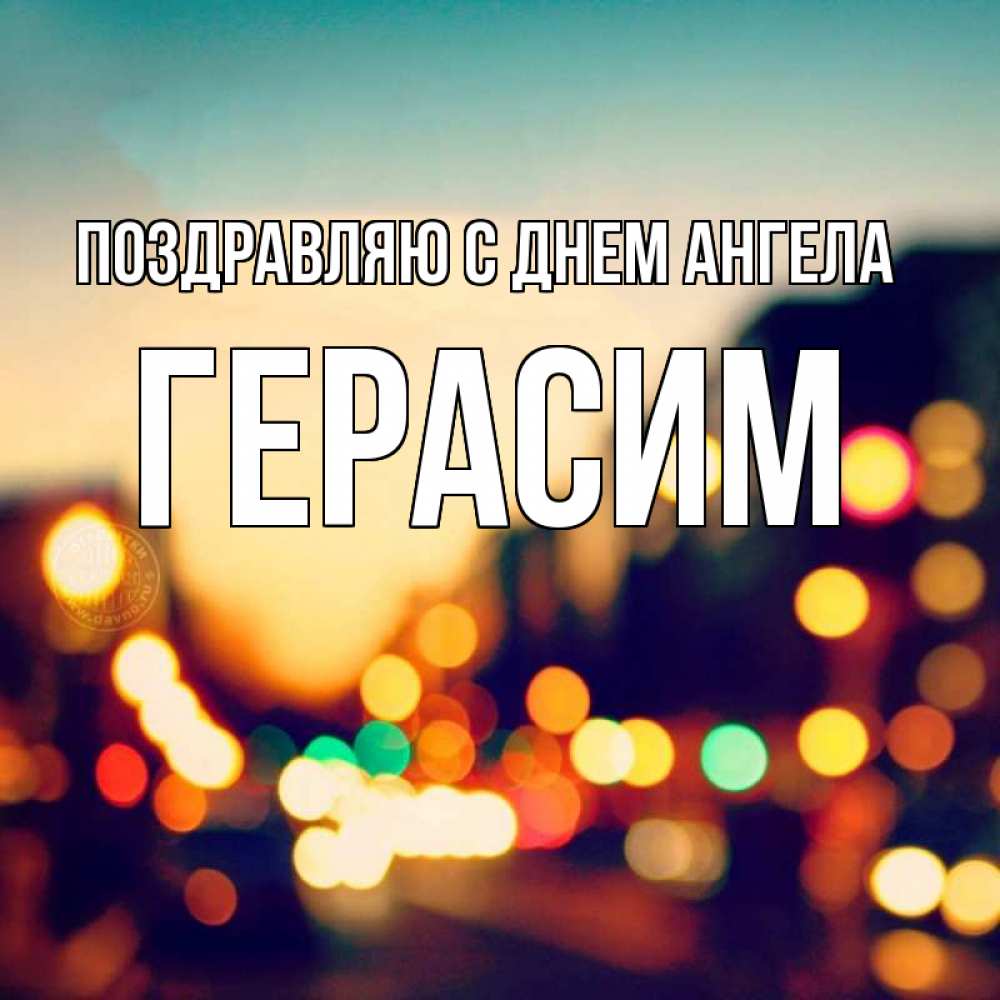 Открытка Поздравляю с днем Ангела Герасим. не в фокусе. город