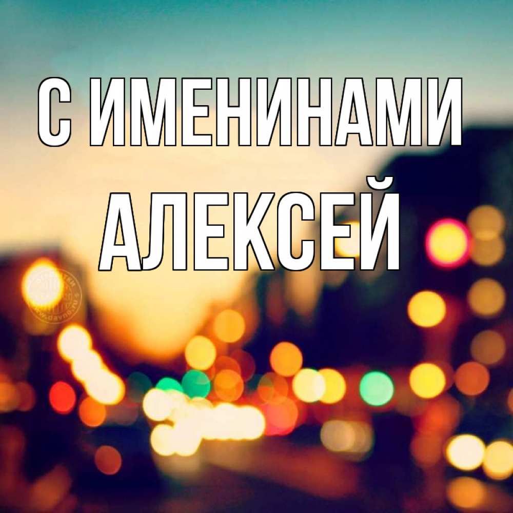Открытка С именинами Алексей. не в фокусе. город