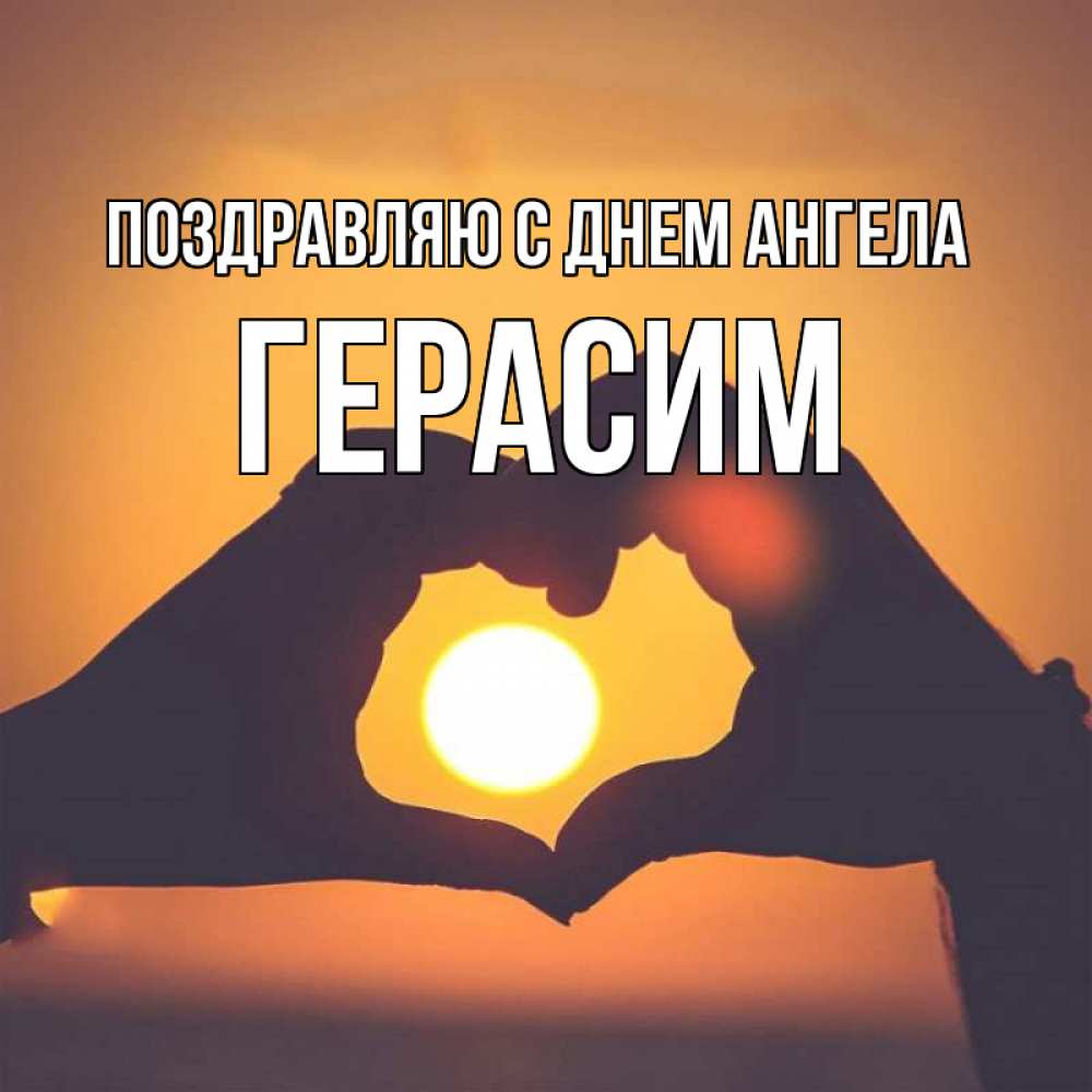 Открытка Поздравляю с днем Ангела Герасим. солнце в руках. садится солнце