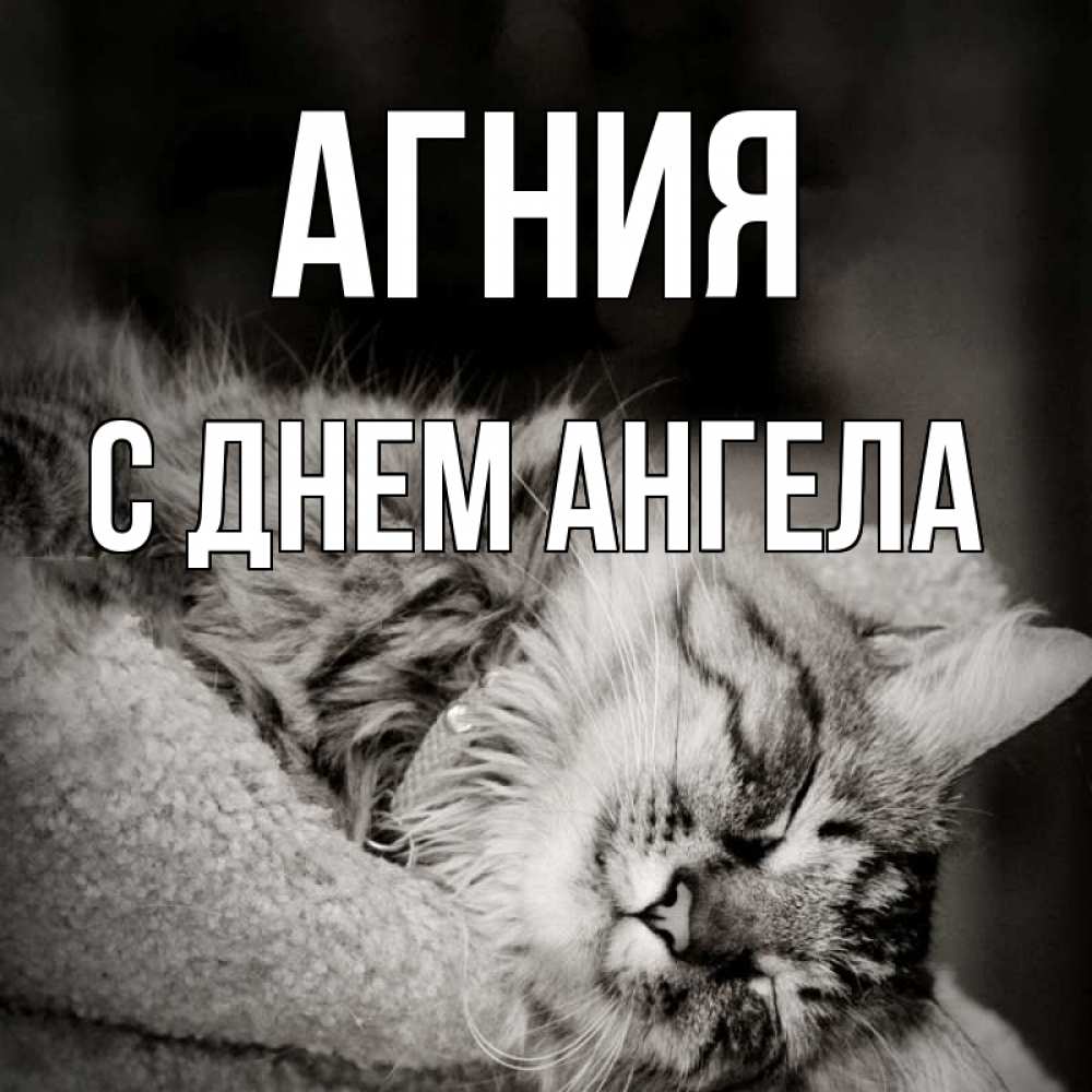 Открытка Агния С днем ангела. котик спит. котярик пушистый