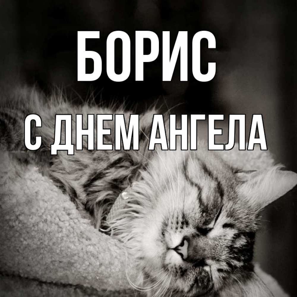 Открытка Борис С днем ангела. котик спит. котярик пушистый