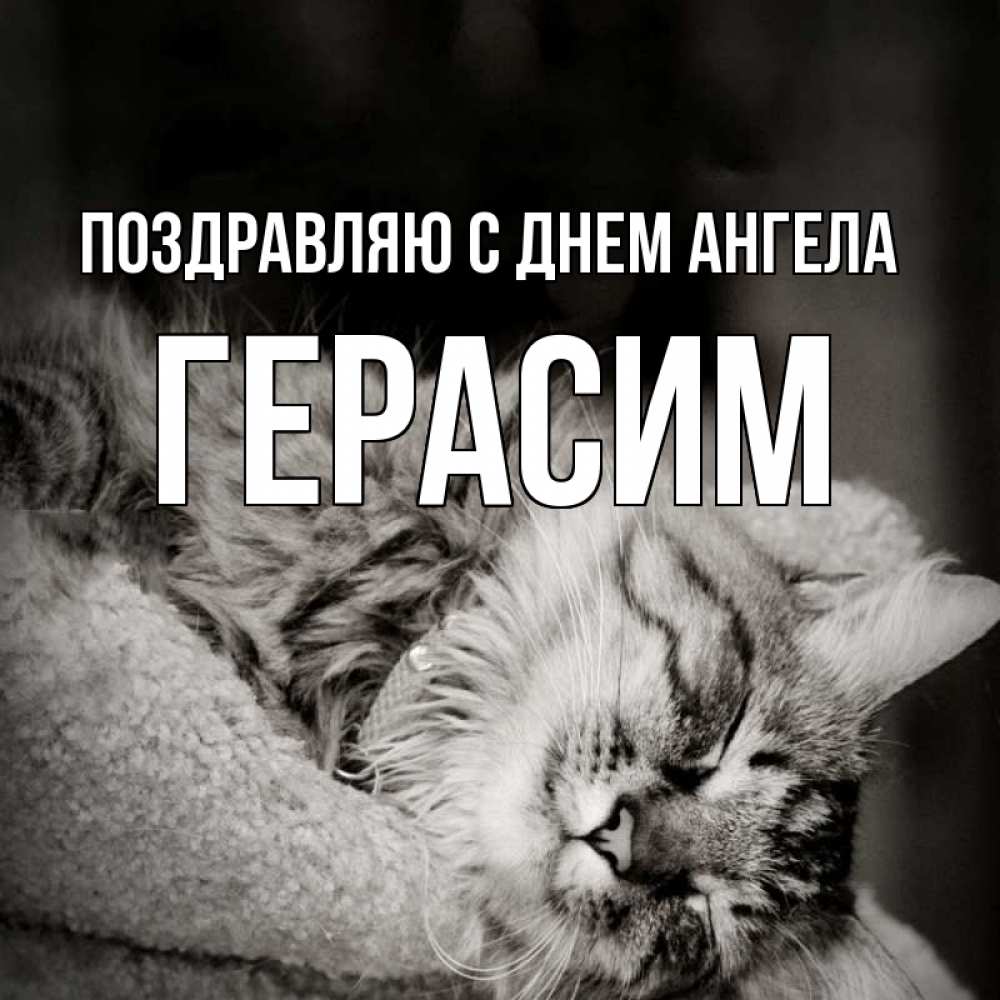 Открытка Поздравляю с днем Ангела Герасим. котик спит. котярик пушистый