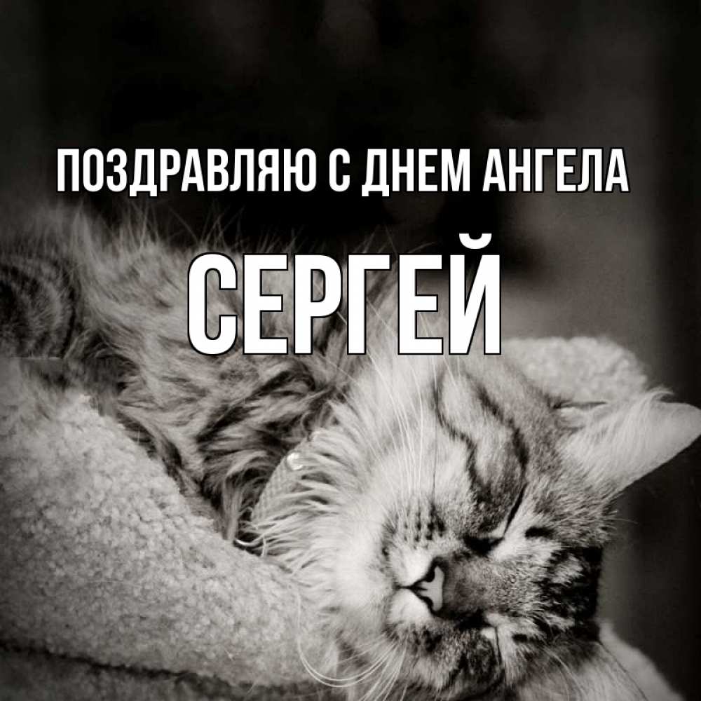 Открытка Поздравляю с днем Ангела Сергей. котик спит. котярик пушистый