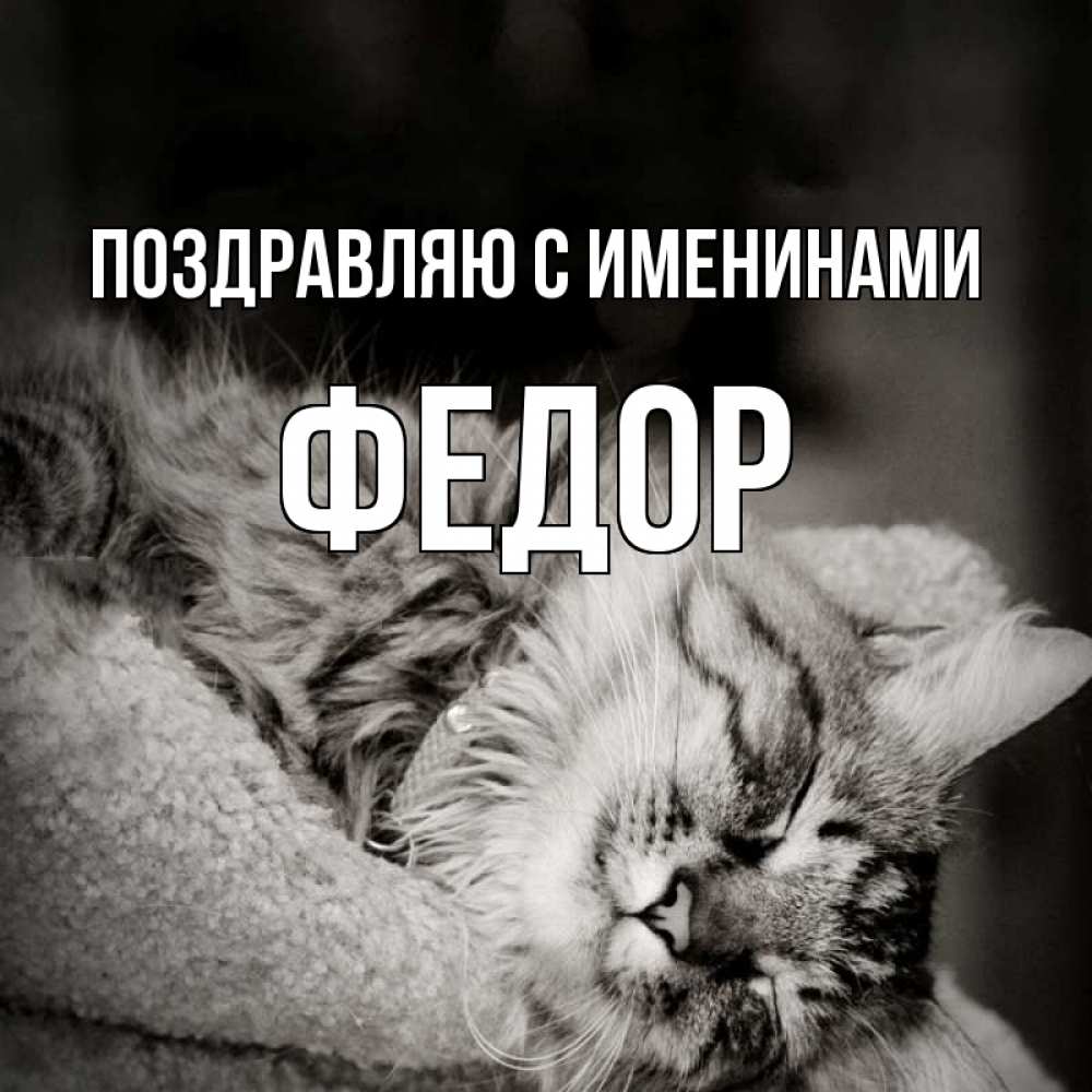 Открытка Поздравляю с именинами Федор. котик спит. котярик пушистый