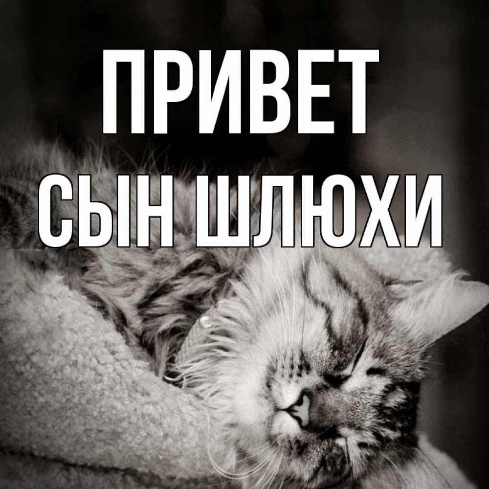 Открытка Привет Сын шлюхи. котик спит. котярик пушистый