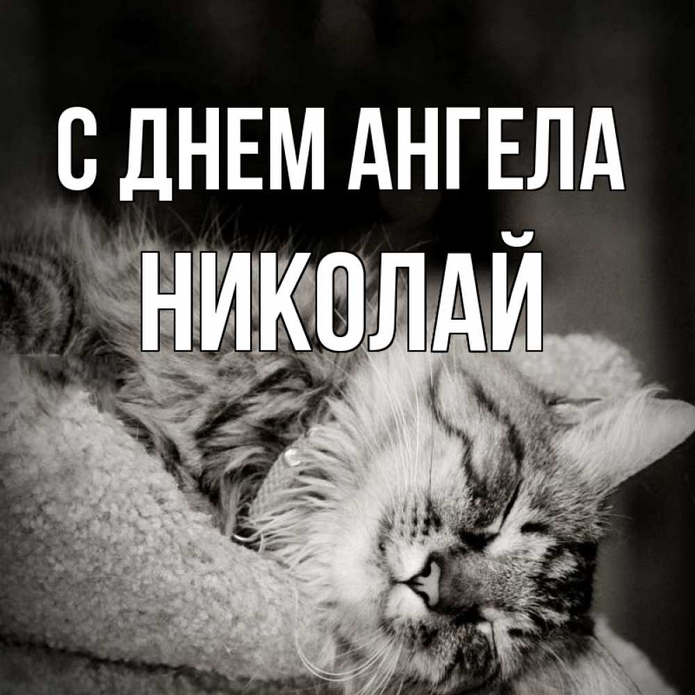 Открытка С днем Ангела Николай. котик спит. котярик пушистый