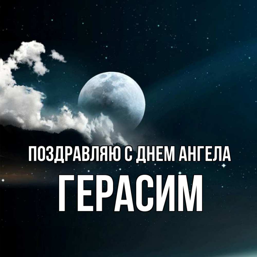 Открытка Поздравляю с днем Ангела Герасим. луна облака. облака в лунном свете