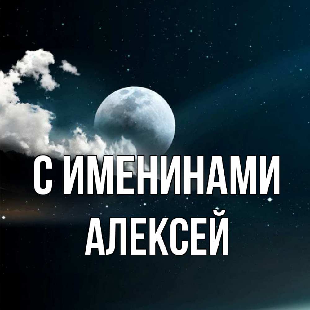 Открытка С именинами Алексей. луна облака. облака в лунном свете